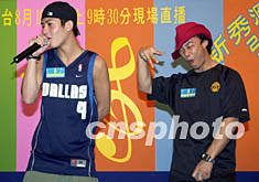 歌星陳奕迅、陳冠希8月15日在香港出席「2002全球華人新秀歌唱大賽(香港區(qū)選拔賽)」記者會,陳奕迅會上模仿陳冠希的臺風(fēng),頗為古怪有趣。鄧慶樂 攝
