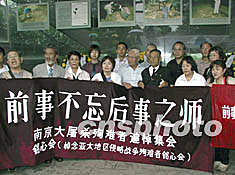 中新社南京八月十五日電(記者 楊艷)今天,南京的天空飄著綿綿秋雨,日本三個(gè)民間團(tuán)體組織的訪中團(tuán)在侵華日軍南京大屠殺遇難同胞紀(jì)念館內(nèi)的“萬(wàn)人坑”前舉行悼念儀式。 這三個(gè)友好團(tuán)體分別是日本“銘心會(huì)”、神戶--南京心連心會(huì)、長(zhǎng)崎日中友好希望之翼。 日本“銘心會(huì)”訪中團(tuán)團(tuán)長(zhǎng)松岡環(huán)女士說(shuō),六十五年前,日本侵略軍在中國(guó)南京犯下了滔天罪行。今年是日中邦交正;苣,如果橫在日中兩國(guó)人民之間對(duì)歷史認(rèn)識(shí)的深深的溝壑不能填平,就會(huì)對(duì)邦交正;瘶O為不利。 神戶--南京心連心會(huì)訪中團(tuán)團(tuán)長(zhǎng)佐藤加惠女士和長(zhǎng)崎日中友好希望之翼訪中團(tuán)團(tuán)長(zhǎng)高實(shí)康稔先生也分別在悼念儀式上發(fā)言。他們表示,將為日中友好繼續(xù)做出努力。 參加悼念儀式的四十多位日本友人向南京大屠殺遇難者獻(xiàn)了花圈。