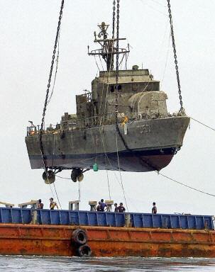 韓國打撈起一艘在黃海交火事件中沉沒的艦艇(圖)