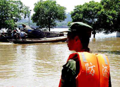 8月11日以來(lái),我省自北向南再次發(fā)生新的降雨過(guò)程。特別是從8月18日開(kāi)始,全省普降中到大雨,部分地區(qū)降暴雨,主要集中在湘中、湘北及湘西南地區(qū),湘、資、沅、澧四水及洞庭湖水位持續(xù)上漲。截止20日14時(shí),湘江長(zhǎng)沙站水位37.4米,超警戒水位2.4米,湘江第六次洪峰即將到來(lái)。洞庭湖城陵磯水位33.5米,超警戒水位1.5米。目前,三口(松滋、藕池、太平)四水入湖流量45127立方米每秒,出湖流量19300立方米每秒,洞庭湖水位仍將攀升。2O日,岳陽(yáng)縣楊柳垸、毛家湖垸,湘陰縣湘濱垸,汨羅市屈原垸等處大堤分別出現(xiàn)翻沙和管涌等險(xiǎn)情;益陽(yáng)桃江縣花果山鄉(xiāng)發(fā)生管涌群;衡山縣境內(nèi)發(fā)生山洪。邵陽(yáng)市市區(qū)4條主要街道被淹;207國(guó)道雙牌段被洪水沖毀,交通中斷,形勢(shì)十分危急。湖南省委、省政府宣布全省進(jìn)入緊急防汛期。為奪取今年抗洪搶險(xiǎn)的勝利,省軍區(qū)號(hào)召: