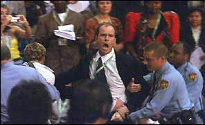 英國(guó)廣播公司的消息說(shuō),鮑威爾批評(píng)津巴布韋和提到美國(guó)如何應(yīng)付環(huán)境變化的時(shí)候,遭與會(huì)者嘲笑。多次噓聲和“布什可恥”的口號(hào)聲使他不得不中斷了當(dāng)天的發(fā)言。