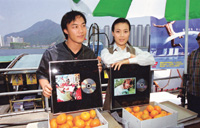 昨日英皇高層吳雨及鄭堯檉帶了兩箱柑前往探班﹐祝賀Joey及Eason的新碟同時奪得白金唱片佳績。而Eason更捧著早前在新加坡金曲獎中奪得的最受歡迎男歌手獎座照相。Eason是繼劉德華﹑張學(xué)友及張信哲后另一位得該獎的歌手。談到當(dāng)晚他剛巧去了洗手間而錯過親自上臺領(lǐng)獎的機會﹐Eason表示﹐真的不知自己會得獎﹐也從來不喜歡預(yù)知得獎名單﹐所以當(dāng)?shù)孟か@獎一刻感到愕然。