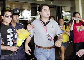 但除了有少少推擠的情況出現(xiàn),因?yàn)楦杳匀藬?shù)不多,郭富城在七八名機(jī)場警察圍成的人墻護(hù)送下,很順利地就登上在機(jī)場外守候多時(shí)的馬賽地轎車。另外七八名警察在一旁嚴(yán)陣以待地和主辦商找來的保鏢等10多人都無用武之地。這與剛剛來新的新一代偶像F4成員吳建豪的盛況比較,顯得“平靜”很多,簡直有著天淵之別。