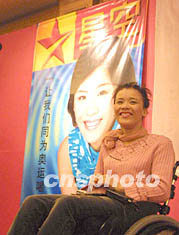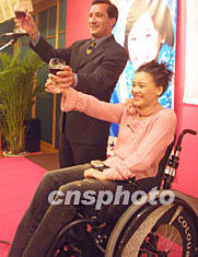 桑蘭九日晚在她出任中國特奧”愛心大使”酒會上對全國殘聯(lián)主席鄧樸方說,她對能參加這樣的運動會深感榮幸。作者:宋吉河