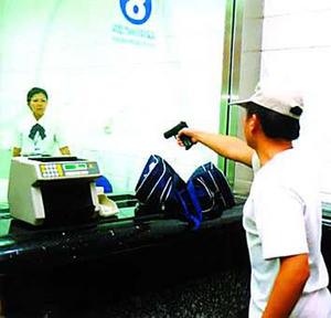 中新網(wǎng)北京9月12日消息:“都別動!快把錢拿出來,不然我開槍了!”3名把“棒球帽”壓得很低的男青年用槍指著幾名儲戶的頭大吼。