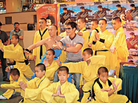 原來這班少林子弟為馬來西亞的佛學(xué)會表演人員﹐得知城城舉行簽名會﹐連早餐也不吃趕來等城城出現(xiàn)﹐終得償所愿。他們當(dāng)中﹐最年少的只有四歲﹐所以一睹偶像風(fēng)采后﹐還天真爛漫地與城城一起擺pose合照﹐場面極之可愛。城城說﹕“萬料不到有緣會在這里遇上少林子弟﹐得以合照更是一種緣份!庇捎诔浅且s往機(jī)場返港﹐在時(shí)間緊迫下﹐擠滿近千人的商場﹐只有五百人獲得簽名。