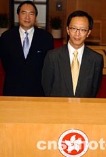 香港財(cái)政司司長(zhǎng)梁錦松和經(jīng)濟(jì)發(fā)展及勞工事務(wù)局局長(zhǎng)葉澍堃,9月17日公布香港6月至8月的失業(yè)率為7.6%,比5至7月下降0.2%。中新社圖 任晨鳴 攝
