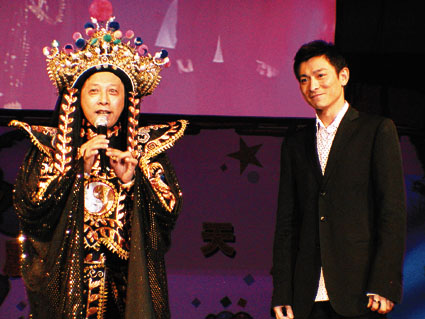 中新網(wǎng)9月20日電 九月二十七日是劉德華四十一歲生日,日前華仔與歌迷會歌迷舉行生日派對預(yù)祝,吳君如、林建岳等都有到賀。其中華仔的師父變臉大師彭登懷更專誠來港出席生日會,給華仔一個意外驚喜。