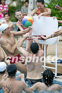 新絲路中國(guó)模特大賽選手二十日在三亞進(jìn)行包括游泳、乒乓球、水球等體育技能比賽,展示T型臺(tái)下的風(fēng)采。作者:毛建軍