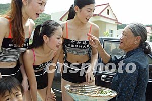 圖:新絲路模特大賽選手體會農(nóng)家樂趣
