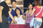Vanness舉行完簽唱會(huì)之后,昨午已飛返臺(tái)灣。原本Vanness搭下午一點(diǎn)的飛機(jī)離開(kāi),但最后改搭三點(diǎn)班機(jī)。Fans不但逃學(xué)來(lái)守候偶像,有十名歌迷更搭的士由酒店追到機(jī)場(chǎng)。約兩點(diǎn)十分,帶帽一身牛仔裝束的吳建豪抵達(dá)機(jī)場(chǎng),一下車半百名Fans即鋒擁而上,瘋狂尖叫,更紛紛將禮物遞給他,情況一片混亂,其中一名女歌迷追逐期間還甩掉了鞋子!不過(guò)她仍然不理光著腳丫子繼續(xù)死追!