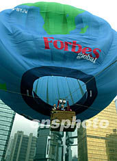 福布斯第二屆全球行政總裁會議9月24日在香港開幕,碩大的“福布斯熱氣球”24日下午載著福布斯集團總裁史蒂夫福布斯和香港投資推廣署署長盧維思在香港中環(huán)添馬艦升起。任晨鳴 攝