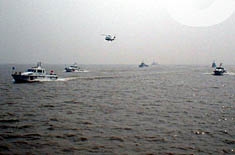 上午九時整,隨著三顆紅色信號在該水域騰空而起,一場中國規(guī)模最大的海上搜救演習(xí)--二○○二年海上搜救、反恐怖、溢油應(yīng)急綜合演習(xí)由此拉開帷幕。