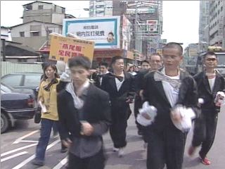 中新網(wǎng)9月29日電 臺(tái)中市28日有一場(chǎng)馬拉松比賽,參賽者比一般選手更辛苦,因?yàn)樗麄儽仨毮7掠靶浅升堅(jiān)谛缕械脑煨,大熱天里身穿燕尾服跑一段路,還要將漏氣的腳踏車(chē)輪胎打滿氣,再騎著腳踏車(chē)到終點(diǎn),才能成為贏家。