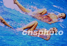 澳門花樣游泳雙人組合在釜山亞運(yùn)會二日決賽上演水中“梁!,富于美感。作者:賈國榮