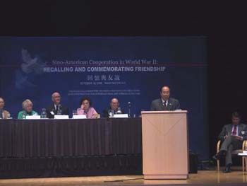座談會(huì)上,美中關(guān)系全國(guó)委員會(huì)主席卡內(nèi)伯、中美老兵代表宋承志和懷特、陳納德將軍的夫人陳香梅分別回顧了“二戰(zhàn)”時(shí)期,中美兩國(guó)人民在反法西斯戰(zhàn)場(chǎng)上的合作歷史和結(jié)下的深厚友誼。他們都表示,中美兩國(guó)在歷史上是友好的,現(xiàn)在和未來(lái)仍然應(yīng)當(dāng)是友好的。