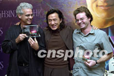 影星成龍主演的電影《Highbinders》,10月22日與該片特別版監(jiān)制Bill Borden及哥倫比亞電影公司高級副總裁Benedict Carver出席該片新聞發(fā)布會。成龍身為香港旅游大使,極力說服Bill Borden將拍攝場景搬到香港。鄧慶樂 攝