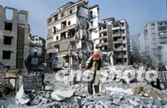 三峽導(dǎo)流明渠截流在即,重慶奉節(jié)舊縣城四十多棟高樓,在陣陣炮聲中夷為平地,僅一個秋季就拆除清理了一百一十八萬平方米的舊樓盤。作者:李中全