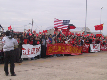 當(dāng)江澤民專機(jī)降落在洛斯卡沃斯國際機(jī)場時,中國香港特區(qū)行政長官董建華夫婦,先期抵達(dá)的中國外交部長唐家璇,外經(jīng)貿(mào)部長石廣生、中國駐墨西哥大使李金章和墨西哥一名副外長等在舷梯旁迎接。