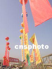 圖:三峽工程截流已建好截流儀式會(huì)場(chǎng)