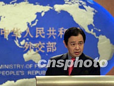 中國(guó)外交部發(fā)言人孔泉五日在外交部新聞發(fā)布會(huì)上就中共十六大的召開(kāi)等問(wèn)題答中外記者問(wèn)。作者:滿會(huì)喬