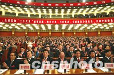中國(guó)共產(chǎn)黨第十六次全國(guó)代表大會(huì)于今天上午9時(shí)在人民大會(huì)堂開(kāi)幕,李鵬同志主持會(huì)議。2134名代表和特邀代表到會(huì)。