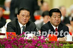 羅干與賈慶林八日在北京中共十六大的主席臺上出席開幕式。作者:毛建軍