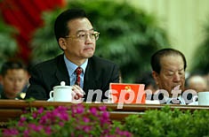 溫家寶八日在北京中共十六大的主席臺上出席開幕式。作者:毛建軍