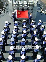 解放軍東海艦隊(duì)官兵在中共十六大召開(kāi)之際列隊(duì)宣誓,堅(jiān)決履行好守護(hù)祖國(guó)海疆的神圣使命。作者:鐘魁潤(rùn)