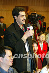 在梅地亞賓館中共十六大新聞中心,此前舉行過(guò)三場(chǎng)記者招待會(huì),有關(guān)人士就經(jīng)濟(jì)發(fā)展、社會(huì)保障、西部開(kāi)發(fā)等問(wèn)題接受了記者的采訪。今天是最后一場(chǎng),又時(shí)值中國(guó)加入世界貿(mào)易組織一周年,記者采訪高潮迭起。(完)