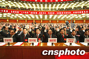 目前,大會已選舉產(chǎn)生新一屆中央委員會,已通過關于十五屆中央委員會報告的決議(草案),批準江澤民同志代表十五屆中央委員會所作的報告。