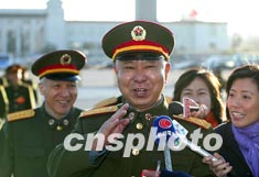 解放軍代表隗福臨步入會(huì)場時(shí)受到媒體關(guān)注。