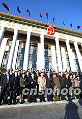 出席會(huì)議的重慶代表們?cè)诖髸?huì)堂前合影留念。