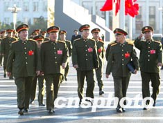 中國軍方高級(jí)將領(lǐng)的黨代表們,十四日清晨在北京出席中共十六大閉幕會(huì)。