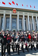 中國共產(chǎn)黨第十六次全國代表大會十四日上午在北京人民大會堂閉幕,代表們興高彩烈步出會場。作者:毛建軍