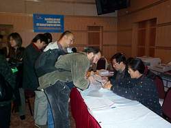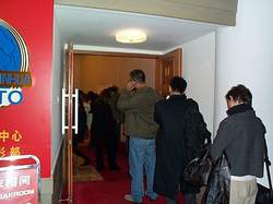 央視國(guó)際播發(fā)專(zhuān)稿報(bào)道說(shuō),今天下午,記者在十六大新聞中心外國(guó)記者接待處見(jiàn)到,等候領(lǐng)取新常委見(jiàn)面會(huì)請(qǐng)柬的外國(guó)記者排起了長(zhǎng)長(zhǎng)的隊(duì)伍,一直延伸到接待處的大門(mén)口外。