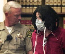 流行樂壇之王邁克爾·杰克遜以被告方證人的身份出現(xiàn)在加利福尼亞州一家法庭上,因他的一名前經(jīng)紀人以違約罪名向他索賠2100萬美元并提出訴訟。身穿紅襯衫、面帶白口罩的邁克爾·杰克遜當天中午乘坐豪華加長轎車來到加州圣巴巴拉縣高等法院。等候在此的數(shù)十名歌迷看到杰克遜亮相之后都情不自禁地尖叫不止。