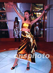 一支模特隊十六日為福州第七屆住房交易會造勢。近年的福州展覽業(yè)興盛,主辦者想方設法吸引更多的觀眾。作者:劉可耕