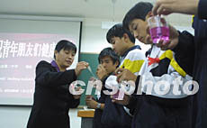 今天中央電視臺在新聞三十分節(jié)目中報道,在北京二中的預(yù)防艾滋病知識選修課上,老師正通過一個生動的游戲讓同學(xué)們了解艾滋病的傳播及危害。30多個同學(xué)的水杯中,原本只有一杯帶有堿溶液,經(jīng)過幾次交叉換水的游戲,再用試劑檢驗,竟然傳給了將近一半的同學(xué)。
