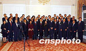 晚宴前,朱镕基還會見了香港特區(qū)政府主要官員和行政會議成員,并同他們合影留念。