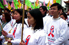 十一月二十四日,一百多位來自昆明各高等院校的青年志愿者從昆明城郊四個方位出發(fā),最后在昆明金馬碧雞廣場會聚。他們沿途宣傳預防愛滋病的知識,以減少大眾對愛滋病感染者和病人的偏見和歧視。作者:納家驊