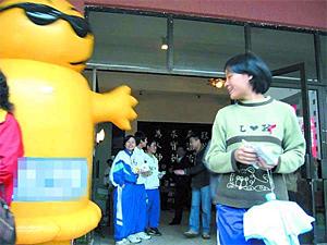 現(xiàn)場(chǎng)女生被安全套的巨型秀逗宣傳道具吸引