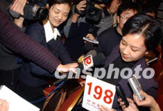 圖為中標者競標成功后接受媒體采訪。