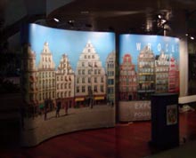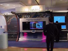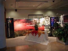 在中國的展臺,外層設(shè)有照相機(jī)鏡框形狀的白色門框,蘊(yùn)涵“聚焦”之意。在門框上,還做成了一個(gè)激光豎琴,手指撥動激光束便能聽到動聽的旋律。今天一位中國姑娘將在這里演奏中國申博宣傳片的主題曲———《好一朵美麗的茉莉花》。