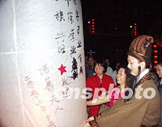 海南2日晚舉辦歡樂(lè)節(jié),一位姓諸葛的女士在“諸葛亮”的指導(dǎo)下,放飛孔明燈。作者:顧時(shí)宏