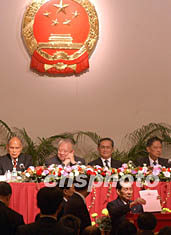 一時一刻,在一位女工作人員宣讀完當選者名單后,董建華發(fā)表了簡短講話。他說,這是香港回歸后第二次作為獨立單位選舉全國人大代表。新選出的三十六位代表,將代表香港永久性居民中的中國公民,參加最高國家權(quán)力機關(guān)的工作。他代表選舉會議主席團表示祝賀,并向一個月來辛勤工作的選舉會議成員、記者朋友、香港社會各界表示感謝。