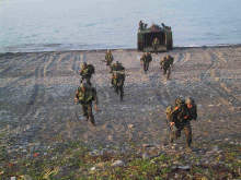 5日清晨,聯(lián)興88號操演地點,海象相當良好,風平浪靜,操演正式下達命令后,只見海軍兩棲登艦艇,在空軍戰(zhàn)斗機及陸軍攻擊直升機掩護下,載運包括戰(zhàn)車、捍馬車等車輛及海軍陸戰(zhàn)隊官兵弟兄們,發(fā)動5、6波搶灘登陸,與岸上反登陸部隊發(fā)生激戰(zhàn),在完成消滅岸上反登陸部隊及清除岸上地雷后,順利搶灘登陸成功。