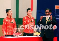 在祥和的中國民樂聲中,來自北京大學的女大學生將印有中國香港、中國澳門和中國臺北三隊英文字樣的字條從玻璃碗中一一取出,“找到”了各隊的組別位置。這三支球隊將分別參加第十三屆亞洲杯足球賽預賽第一階段D、E、B三組的比賽,爭取殺入第二階段預賽(既資格賽)。