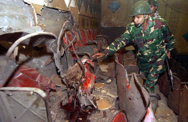孟加拉國邁門辛市7日傍晚發(fā)生影院爆炸案后,8日又有4名傷者因搶救無效死亡,從而使死亡人數(shù)由14人上升到18人。7日傍晚,位于首都達卡以北127公里的邁門辛市4家影院先后發(fā)生炸彈爆炸,當場炸死14人,100多人受傷。受傷者被立即送往醫(yī)院緊急搶救,其中不少人傷勢嚴重。圖為警察在檢查爆炸地點。