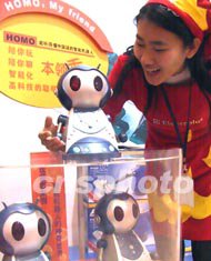 在十二日開(kāi)幕的北京時(shí)尚生活展覽會(huì)上,一款可聊天、唱歌、行走的機(jī)器人大受歡迎。這款智能機(jī)器人內(nèi)置老人、青年、兒童三種情景模式,上市一周就成為時(shí)髦一族的新新寵物。作者:廖文靜